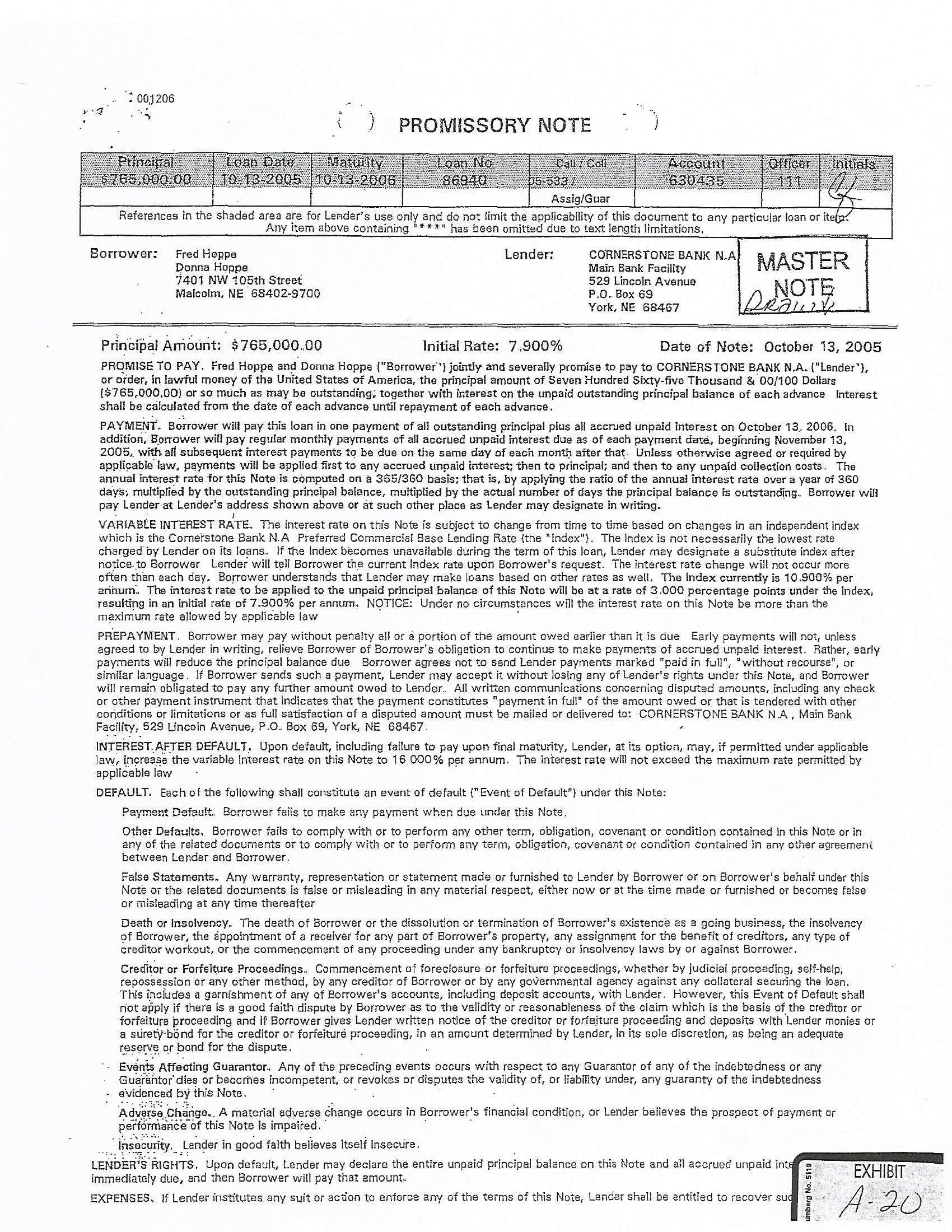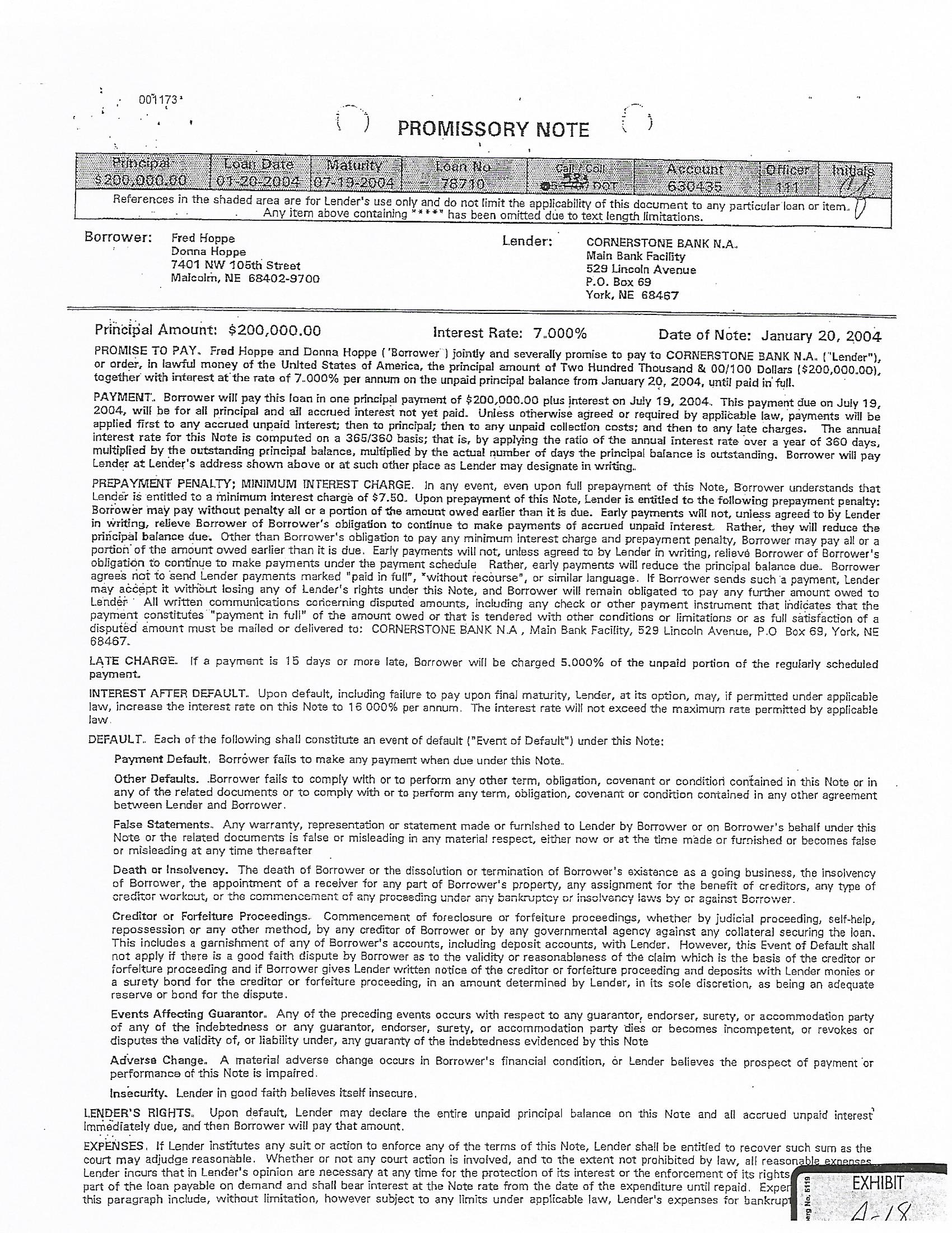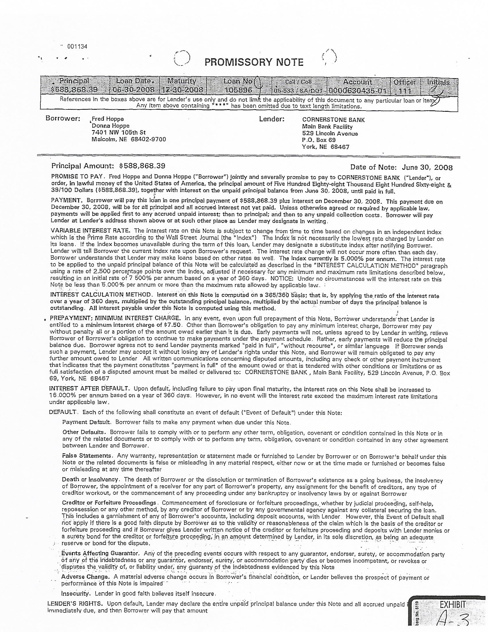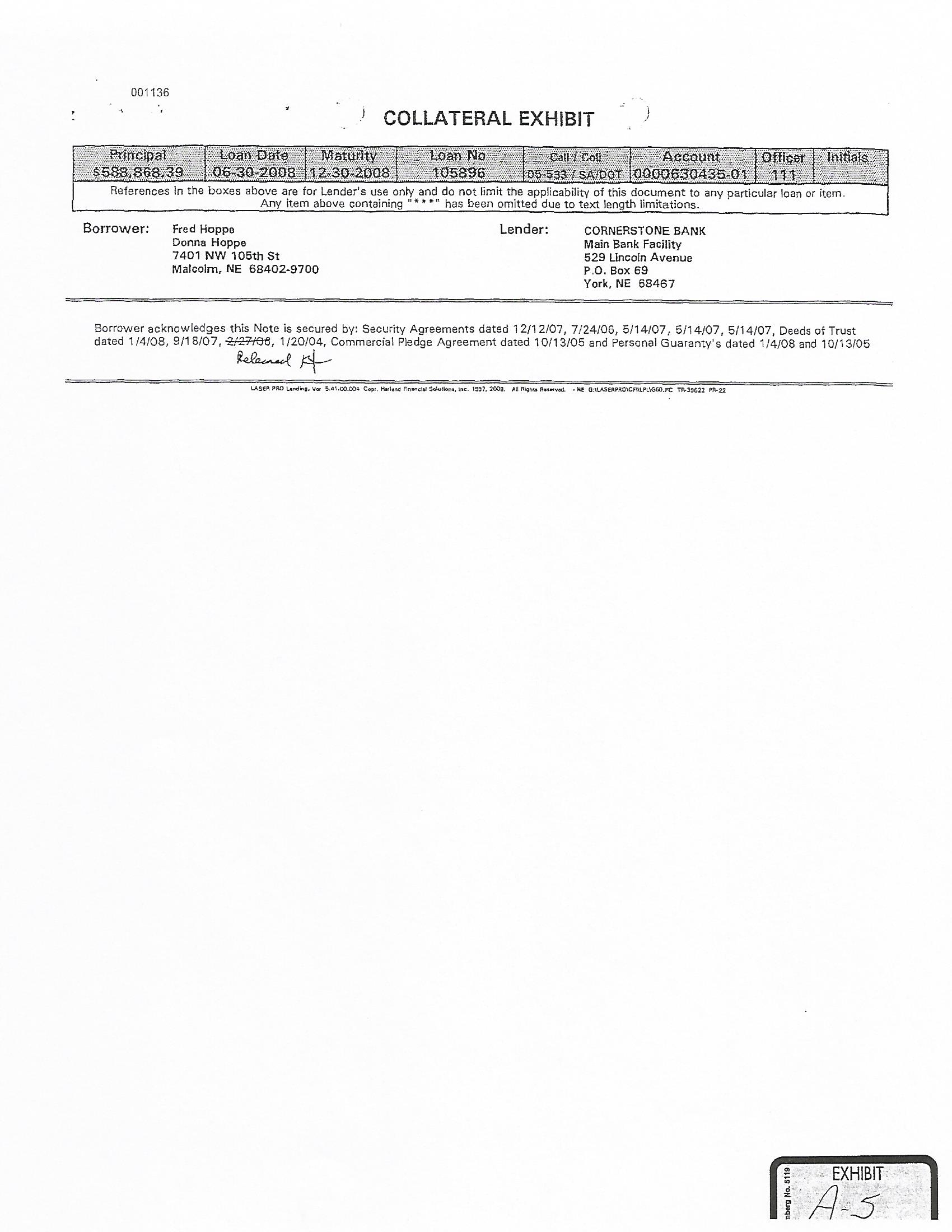 The promissory notes demonstrate Cornerstone’s loans to Hoppe over a period of several years. They were entered in as exhibits in the case.