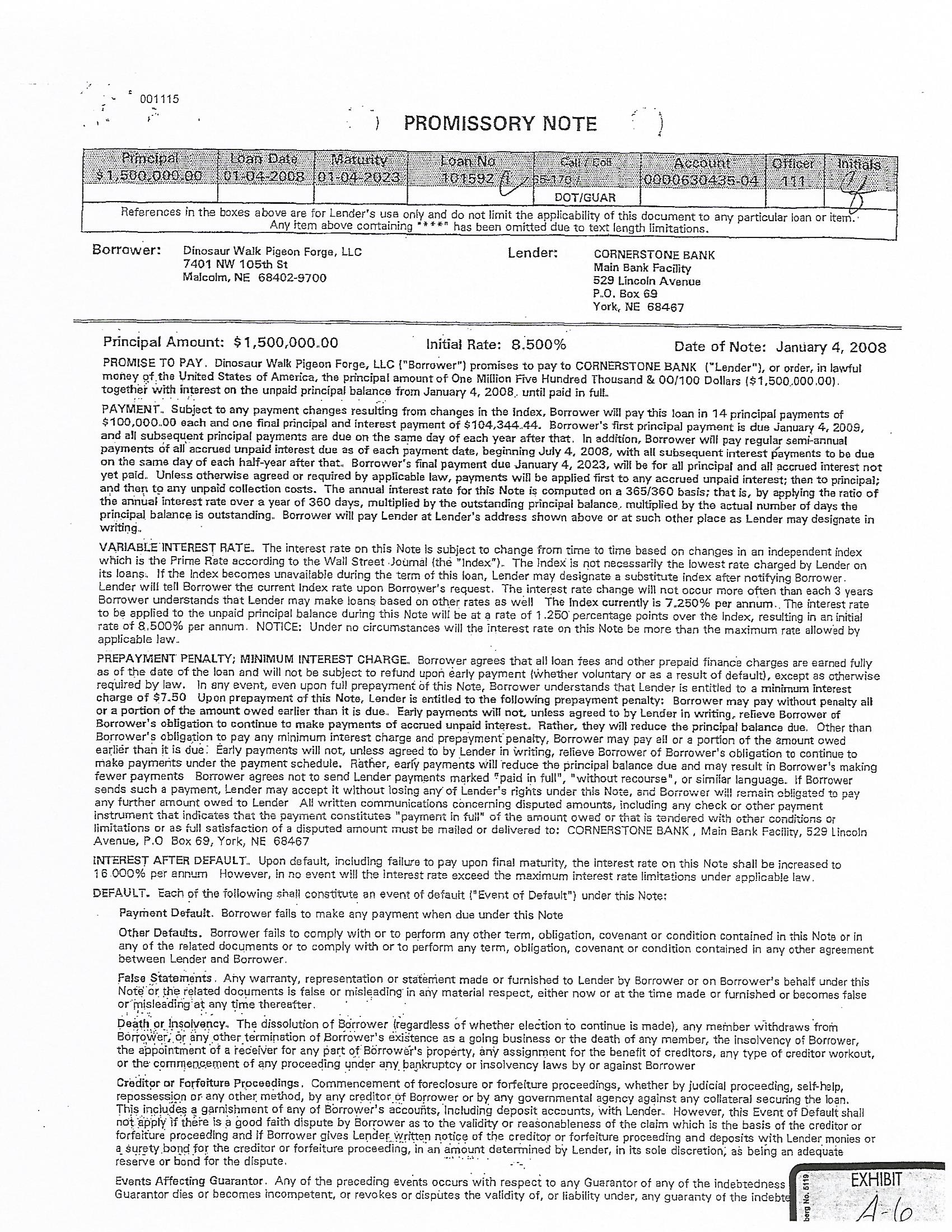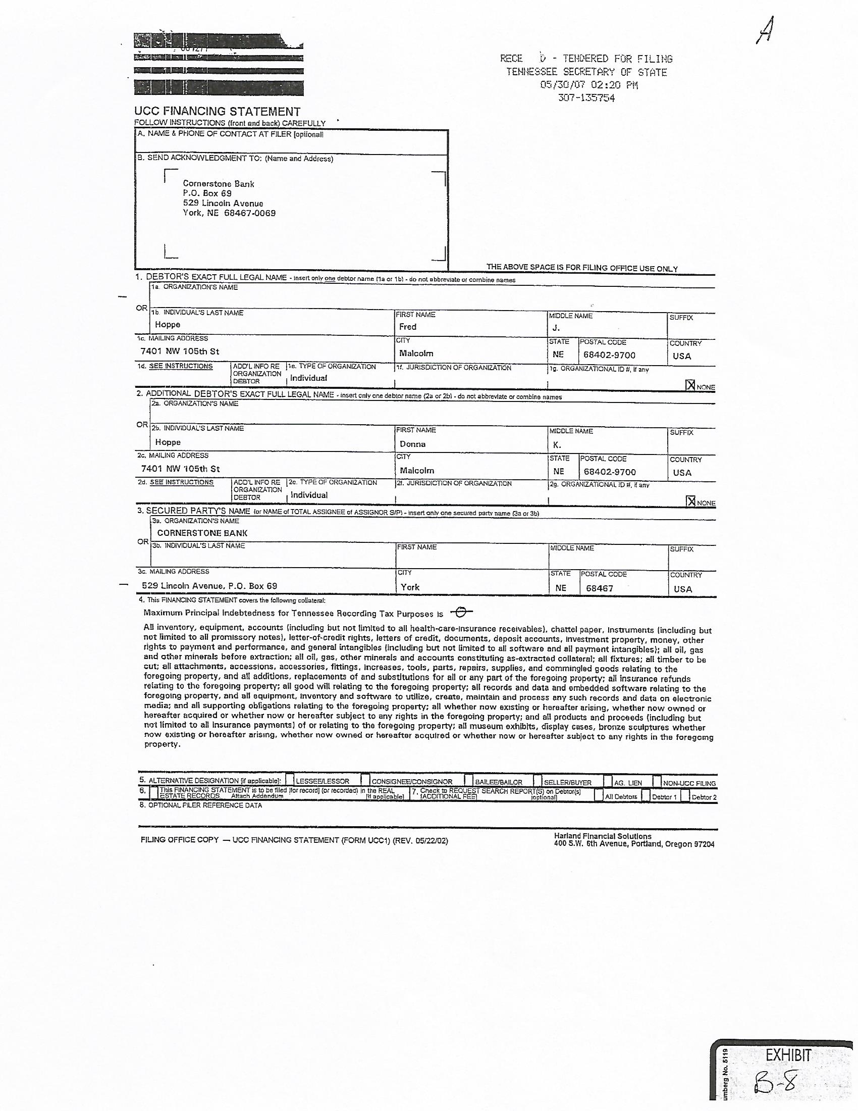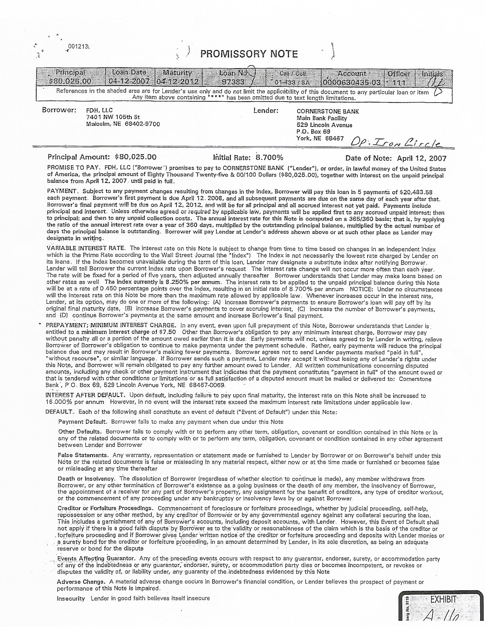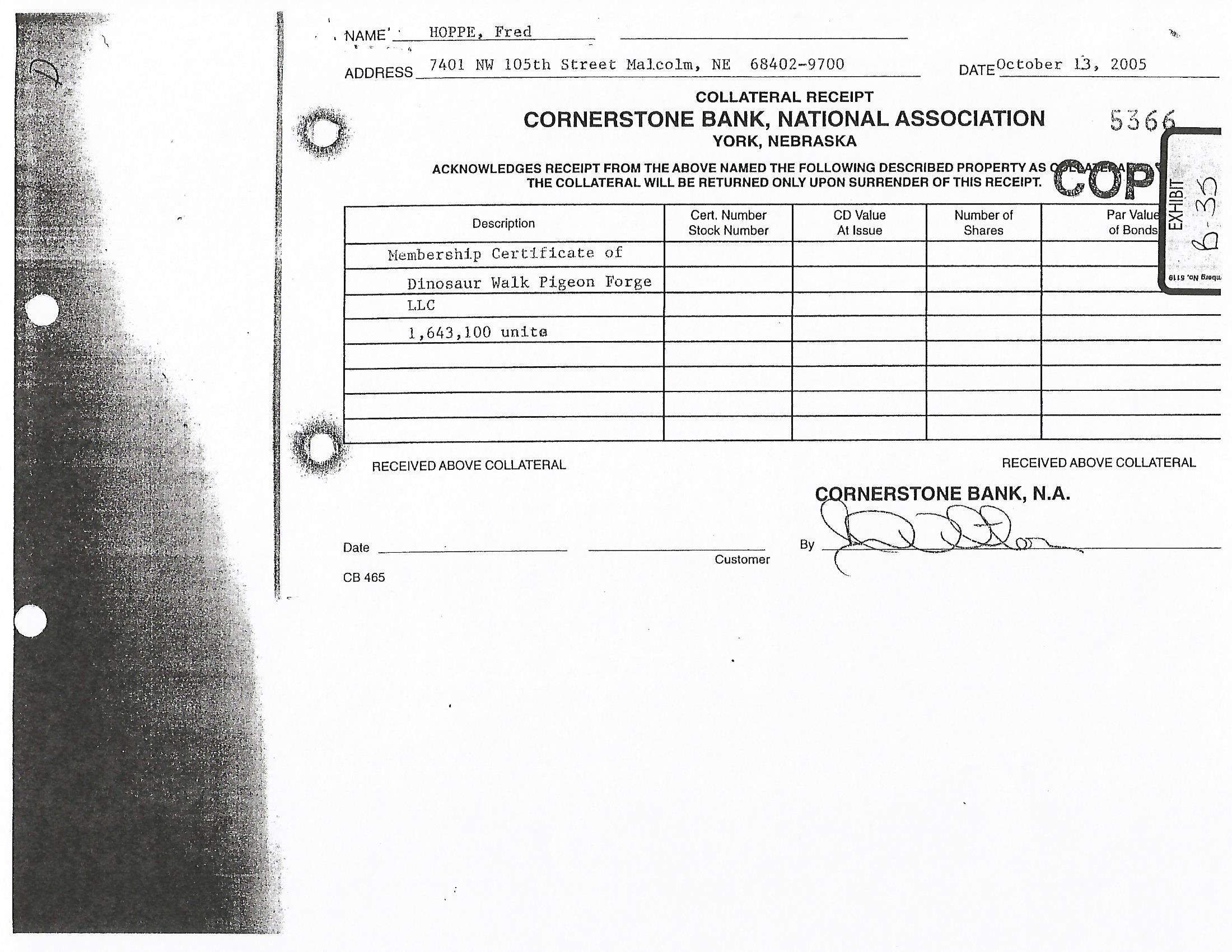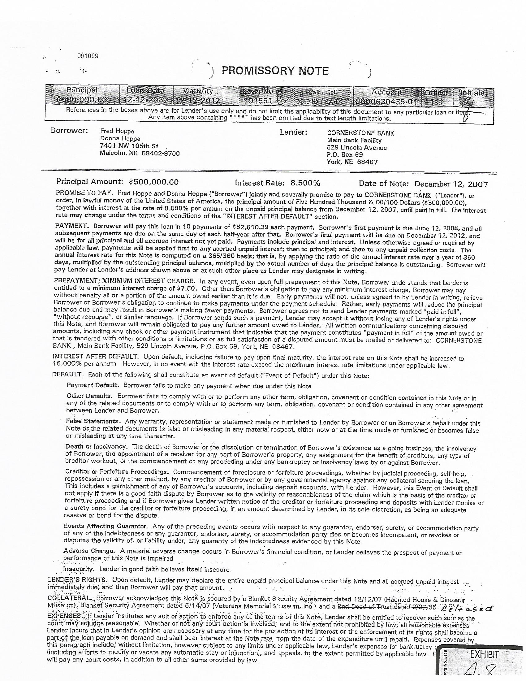 The promissory notes demonstrate Cornerstone’s loans to Hoppe over a period of several years. They were entered in as exhibits in the case.