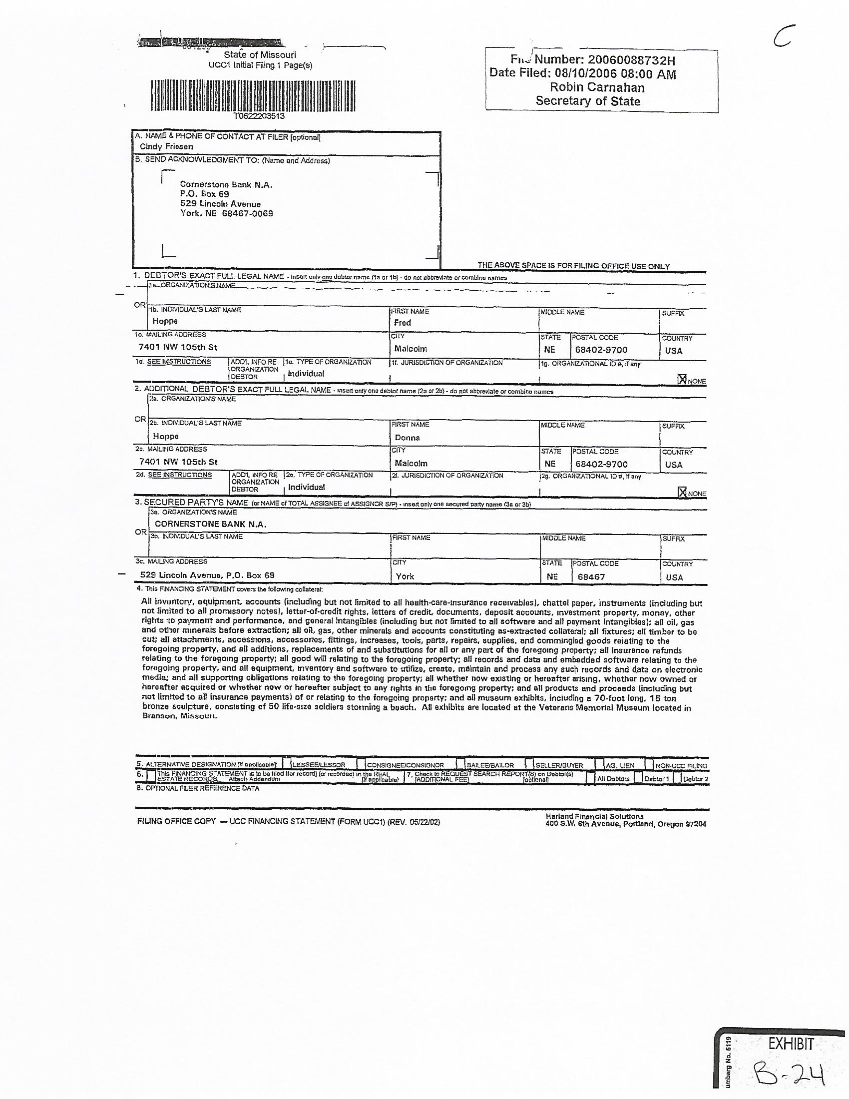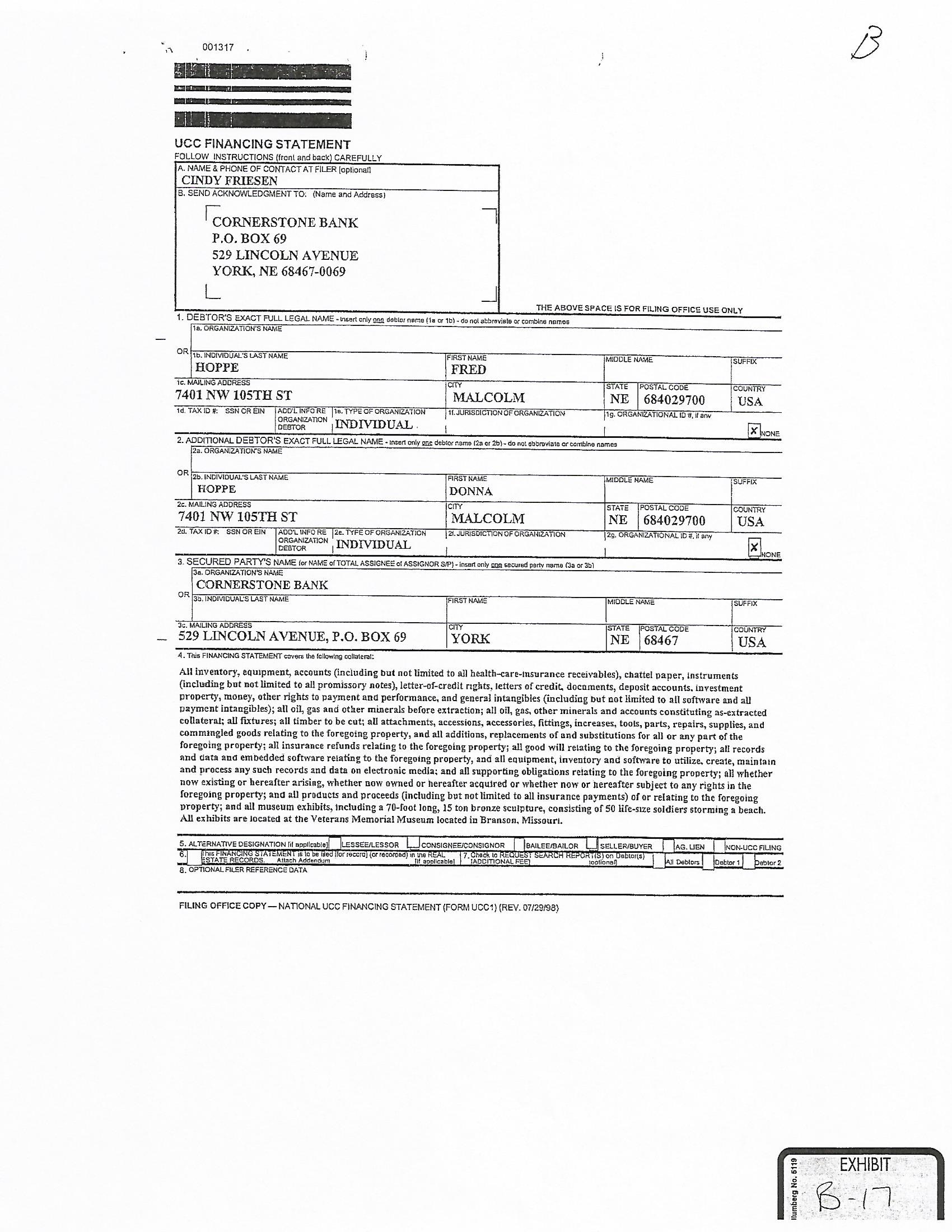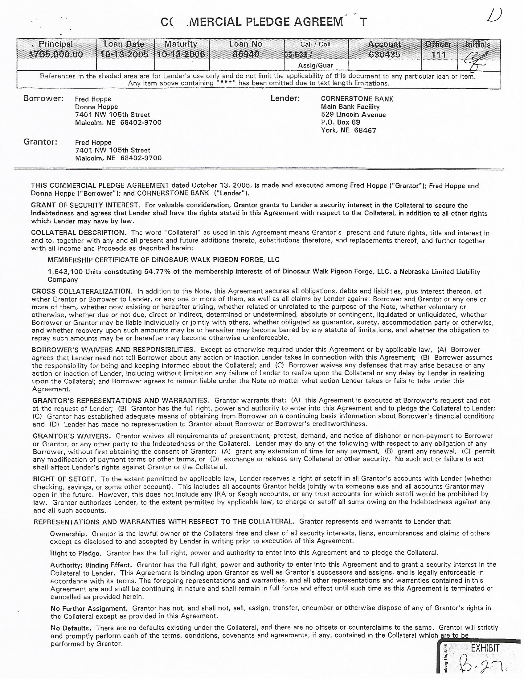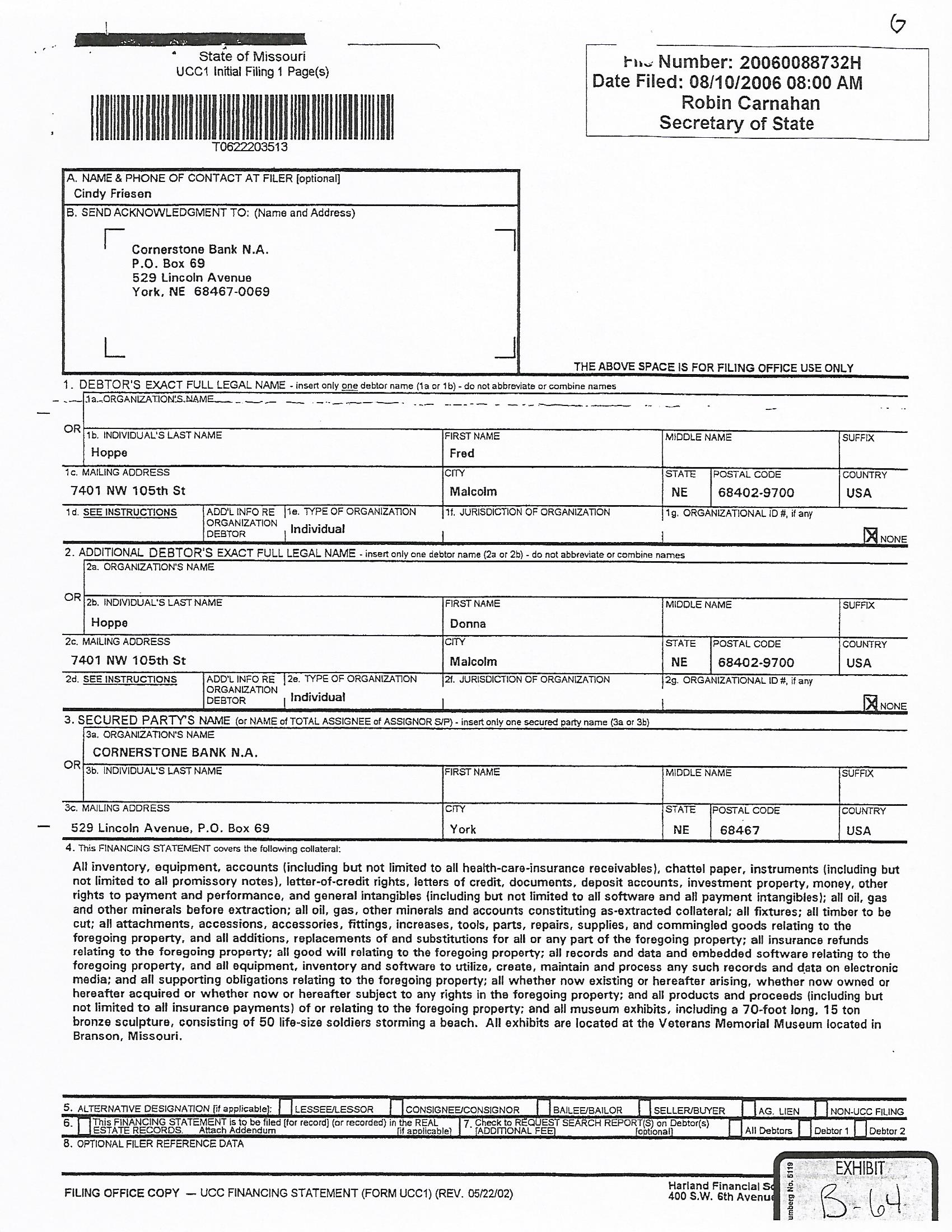 The promissory notes demonstrate Cornerstone’s loans to Hoppe over a period of several years. They were entered in as exhibits in the case.