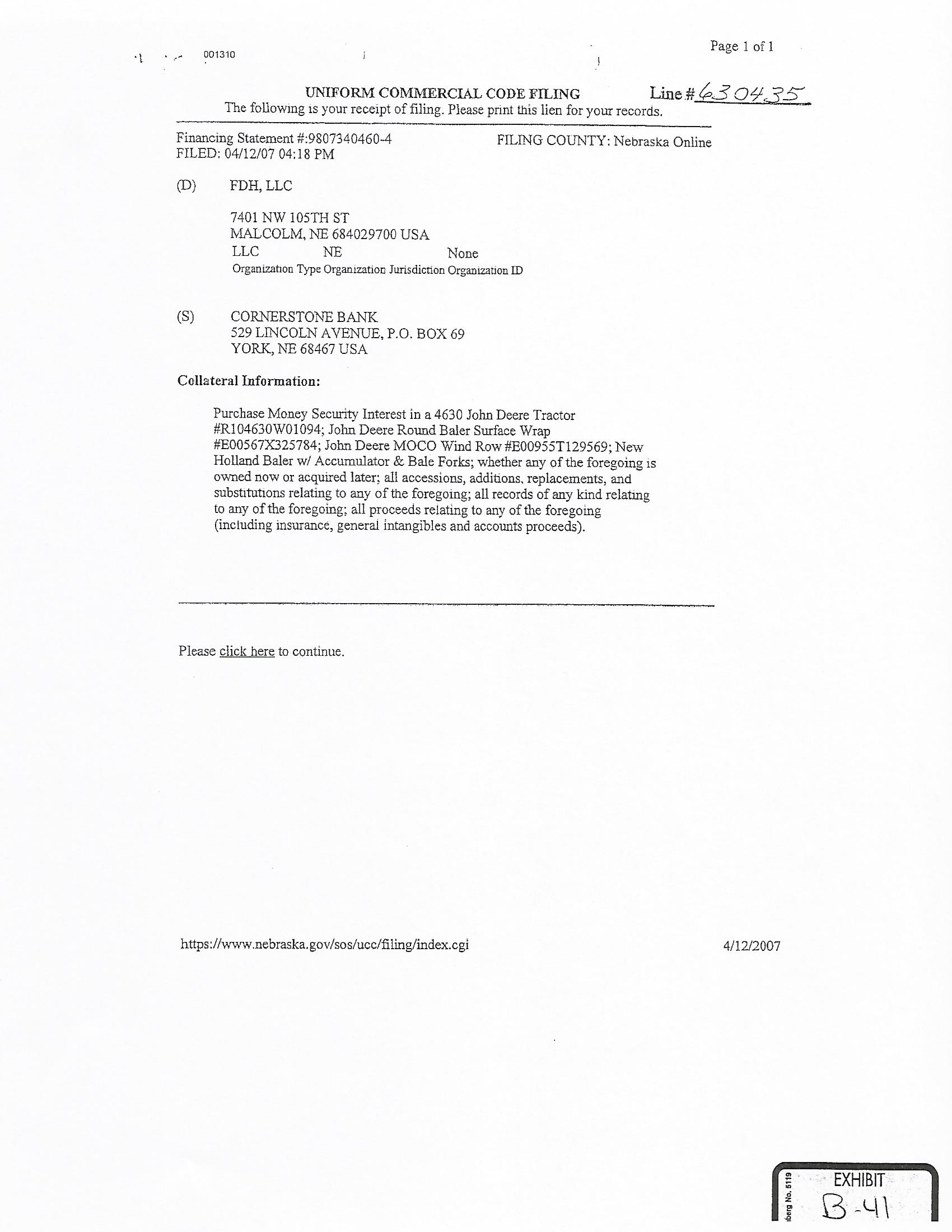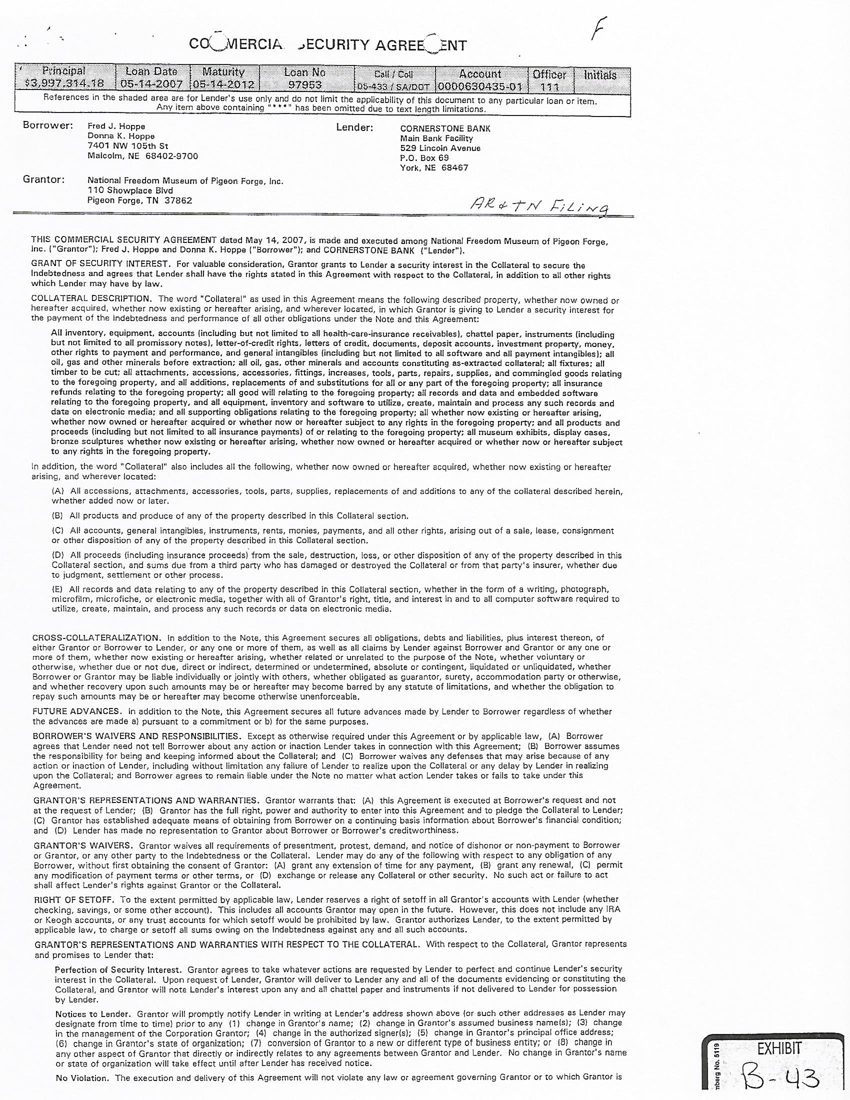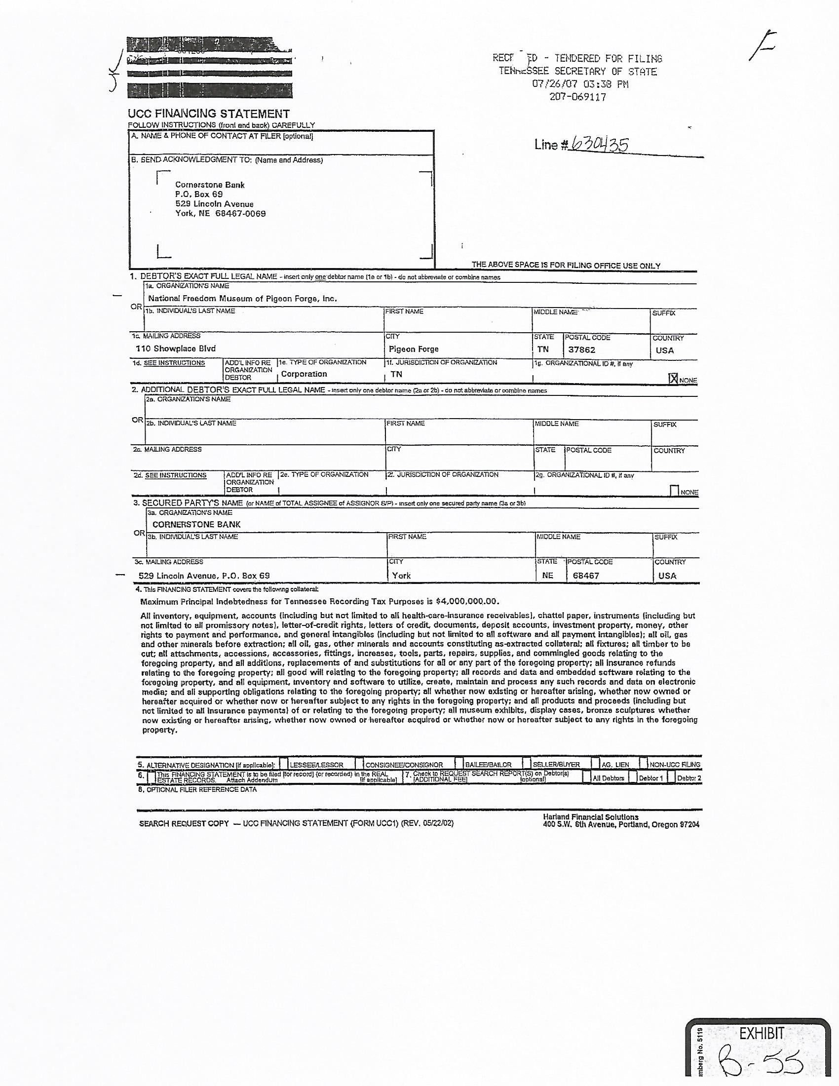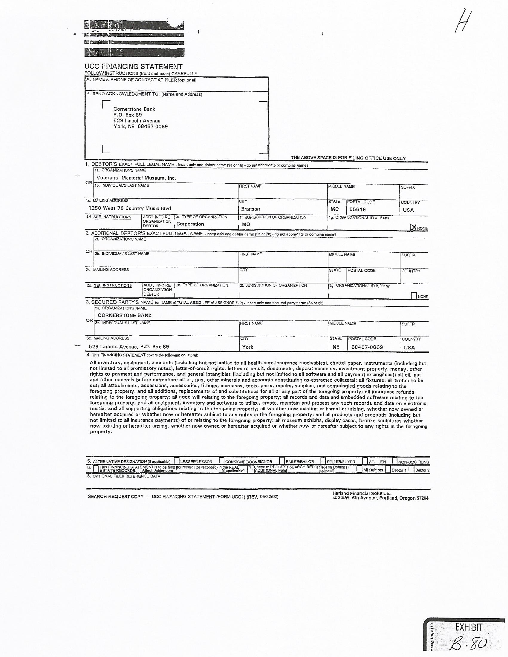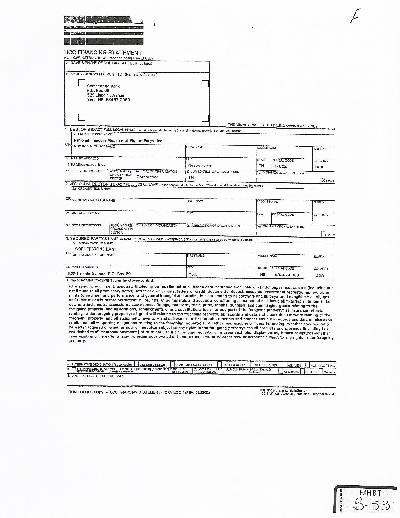 The certificates below were issued, and used for collateral to the bank. The stock certificate for the Veterans Memorial Museum was issued on 10th of June 2009. One week after the loan of June 3rd 2009 was issued using the shares of stock as collateral.
