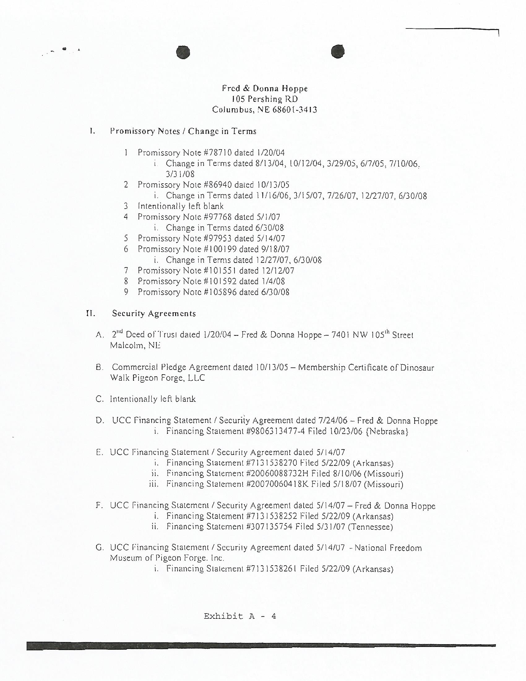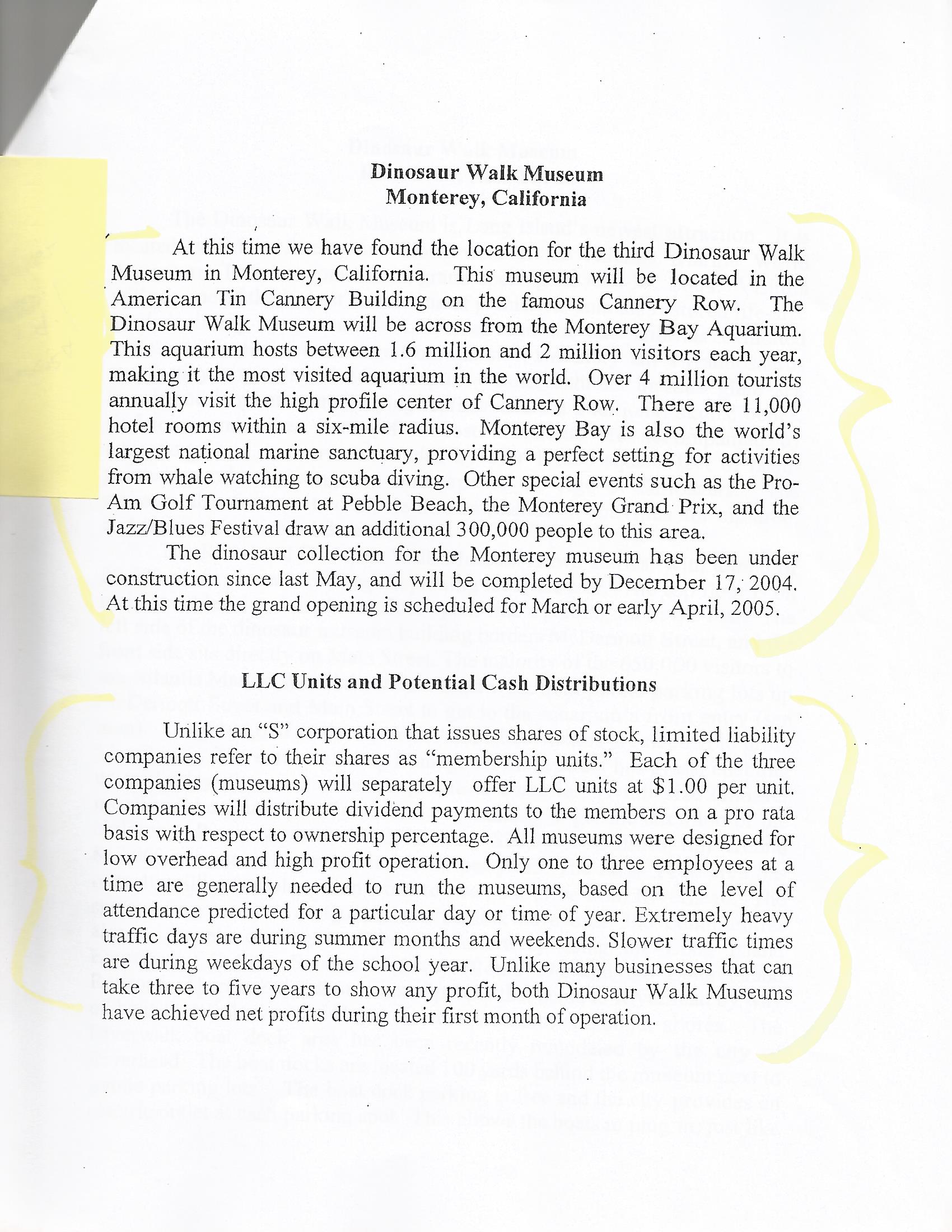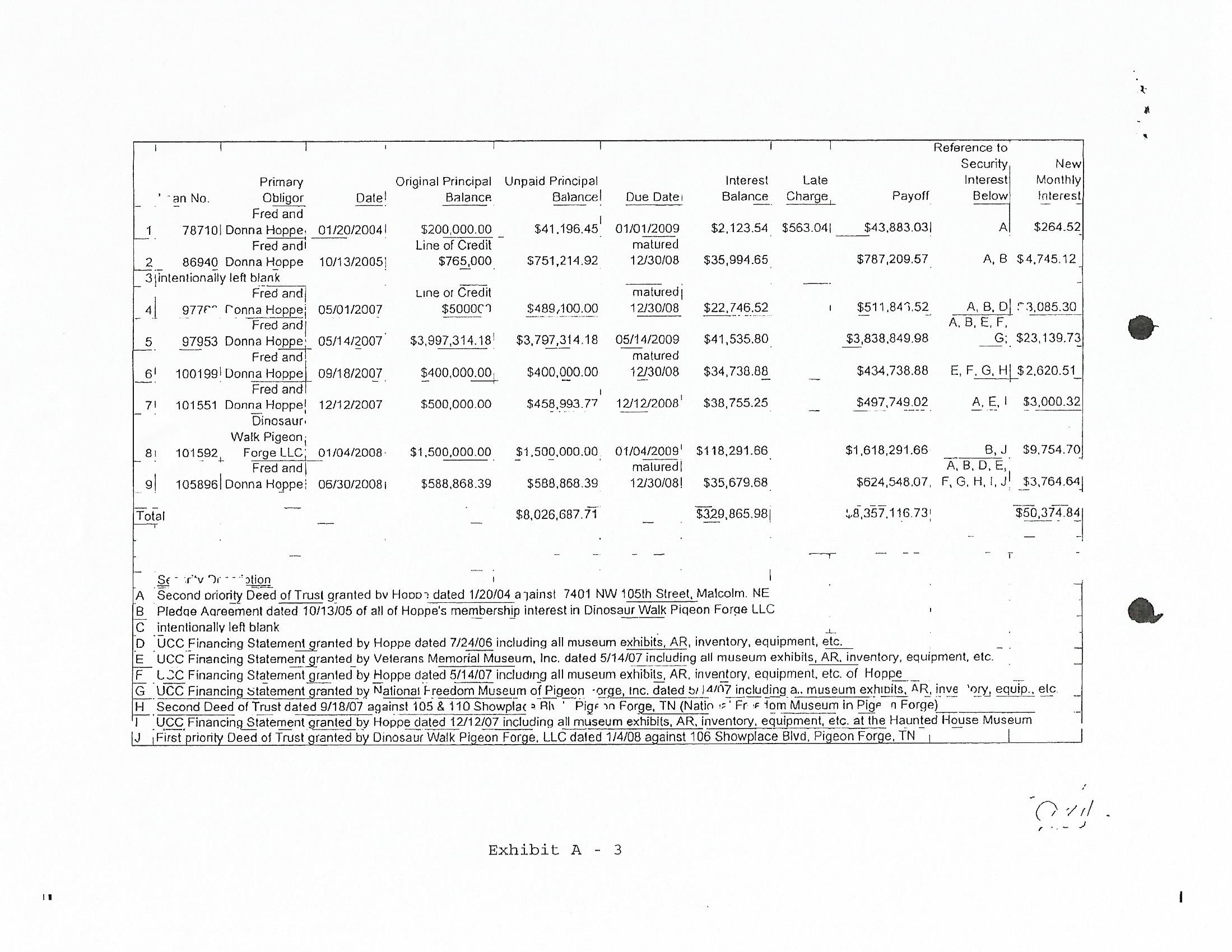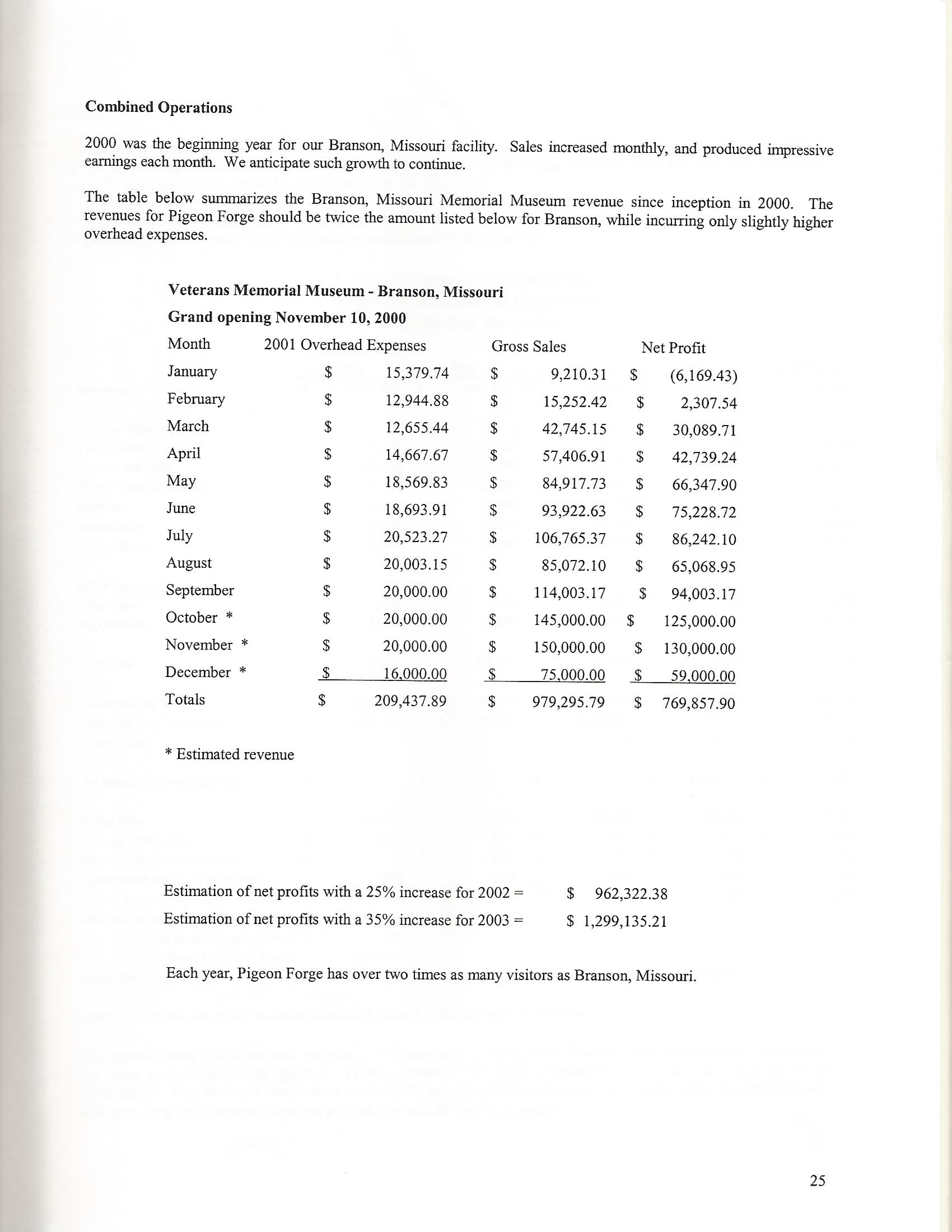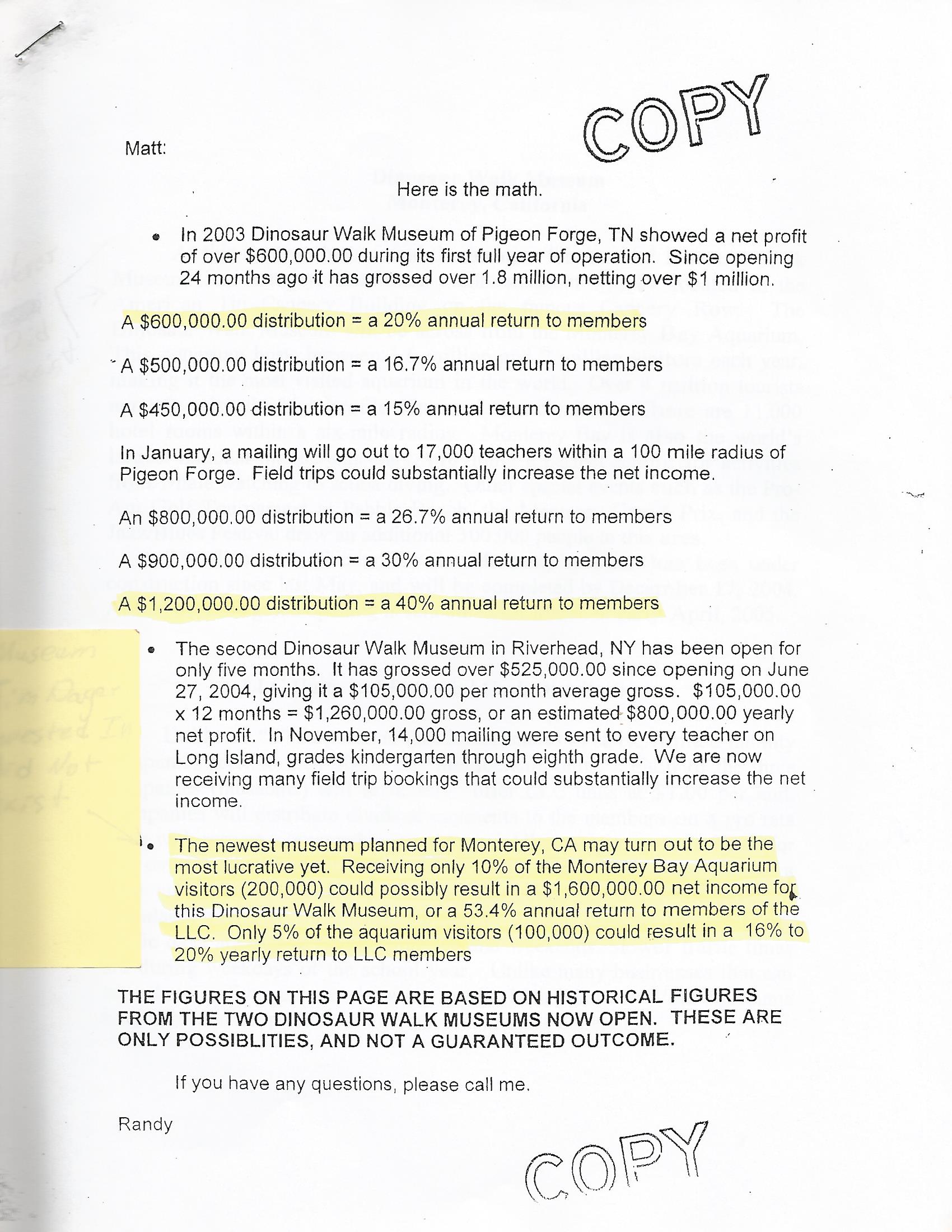 The Pigeon Forge museum closed in 2007. This is one example of how Hoppe attempted to solicit funds from potential investors. At times, Hoppe tried to fund museums that didn’t exist, such as the one in California that was advertised on a brochure seeking donations. The first two pages are an outline of Hoppe’s financial plan for the museums.