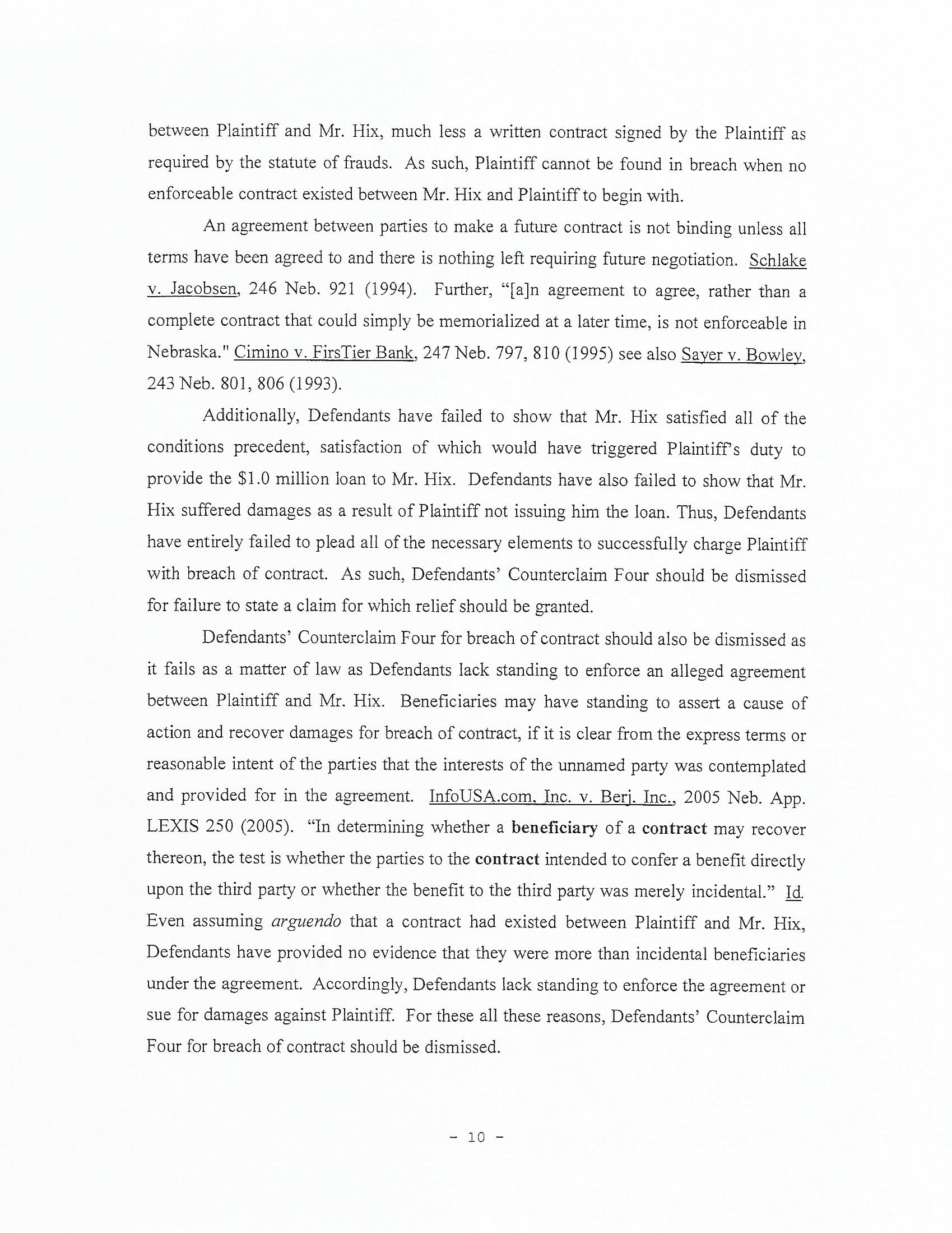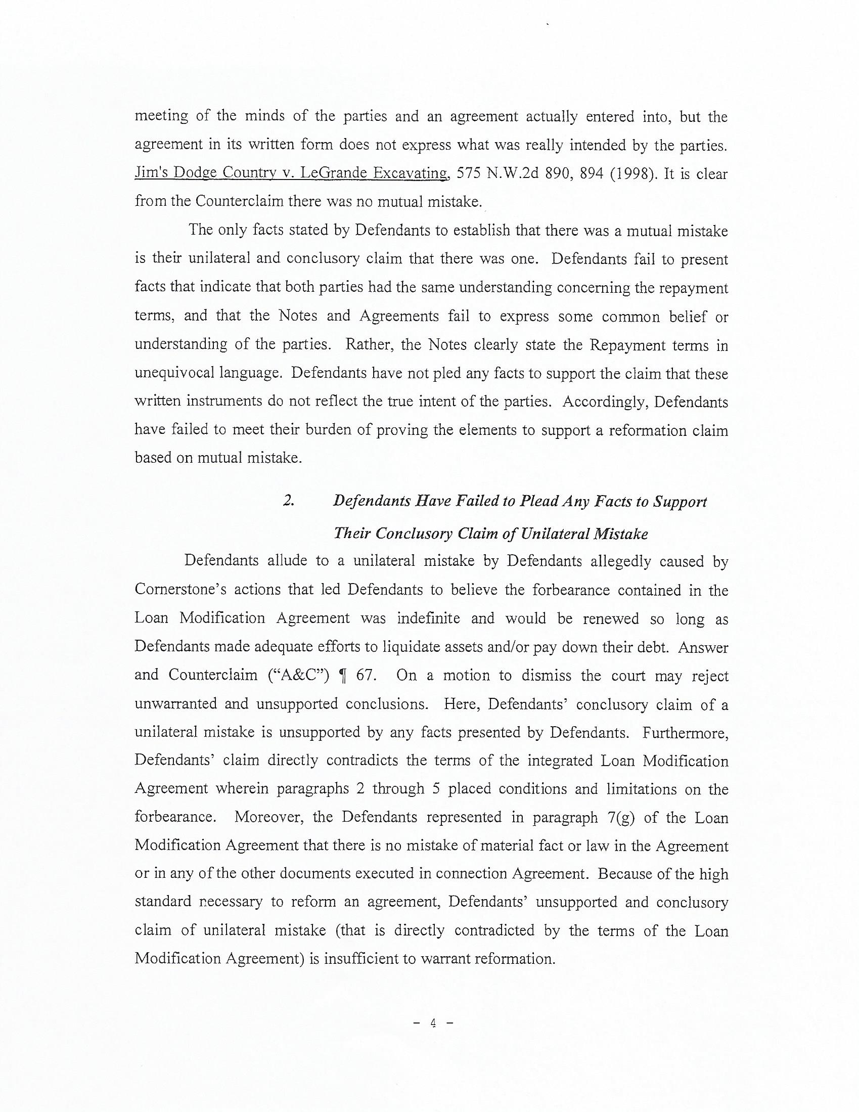 In order to prolong the inevitable, Hoppe filed a counterclaim against Cornerstone. The implications against the bank border on absurd.